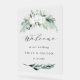 Cette enseigne de bienvenue mariage est ornée d'une végétation hivernale peinte à la main, de fleurs de coton aux textures dorées et aquarelles. Pour une personnalisation plus avancée de cette conception, cliquez sur le lien "customiser plus loin". Des articles correspondants sont également disponibles.