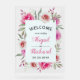 Ce panneau de bienvenue de mariage élégant est fabriqué en acrylique transparent et présente une bordure époustouflante de fleurs aquarelles rose poudré et rose vif. Votre texte personnalisé et vos noms sont magnifiquement affichés dans une police de caractères rose délicate, créant un centre de table romantique et accrocheur pour votre jour spécial.