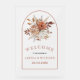 Ce élégant panneau acrylique translucide dépoli présente un superbe design mariage orné de fleurs en terre cuite et d'une arche botanique, parfait pour un thème d'automne. Il présente une arche boho ainsi qu'un charmant bouquet de dahlias, de roses, de feuillage, de feuilles et d'herbe pampas, le tout dans des tons chauds de terre cuite et de beige. L'acrylique transparent améliore la visibilité du design, apportant une touche contemporaine et raffinée à la décoration mariage. Idéal pour une fête d'automne à l'ambiance florale et botanique, ce panneau saura séduire les invités et élever l'élégance de l'événement.
