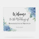 panneau de bienvenue de mariage d'hortensia bleu en acrylique clair