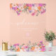 Panneau de bienvenue de shower de mariée de printemps été de fleurs sauvages pastel romantiques avec de jolies fleurs de campagne en rose, pêche, violet, lavande, feuilles vertes et plus, avec une typographie de script brossé sur un fond transparent élégant.