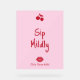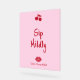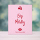 This acrylic bar sign features a playful “Sip Mildly” design created to complement the Girls Gone Mild bachelorette collection. Set against a soft blush pink background, the sign uses bold cherry red typography for a fun, eye-catching look that stands out beautifully on bar tables and drink stations.