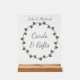 Make sure you have all the proper signage for your wedding reception. This clear, acrylic sign for your cards and gifts table features a dark gray colored Ivy wreath along with the bride and groom's names in a lighter gray shade. Edit names and replace with your own as desired. Select your acrylic sign size.