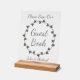 Make sure you have all the proper signage for your wedding reception. This clear, acrylic sign for your guest book table features a dark gray colored ivy wreath along with the bride and groom's name printed in a lighter gray shade. Edit and replace names with your own as desired. Select your acrylic sign size.