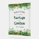 Ce panneau d'accueil du mariage de la Saint Patrick est une touche sophistiquée de tradition. Fabriqué en acrylique, il présente un cadre délicat de verdure luxuriante, ornant le haut et le bas. Les noms du couple, écrits dans une belle police celtique, ajoutent une touche unique et personnelle à la surface transparente.