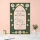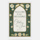 An elegant wedding welcome sign featuring a green stained glass design inspired by Art Nouveau floral patterns. Printed on sleek acrylic, this sophisticated sign creates a beautiful entrance display and adds a timeless, artistic touch to your wedding décor.