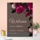 This dark romantic wedding welcome board features pink hand drawn vintage roses on a transparent background.