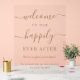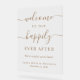 Symbole de bienvenue en acrylique clair et chic avec "Welcome To Our Happily Ever After" dans un mélange de typographie or moderne simple et d'un élégant script d'échange d'or, "We are so content you are here", et vos noms et mariages date dans la typographie serif classique.