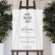 Paraphe simple en monogramme de couple mariage avec des détails de feuilles d'art de ligne botanique pour un magnifique et unique signe de bienvenue minimaliste mariage moderne. Modifiez le texte pour personnaliser.