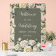 The new opacity slider in the zazzle design tool and the brush stroke, that can make the script thicker are the base for this design, which is transparent and yet well readable. Ivory roses floral transparent wedding welcome reception board.