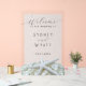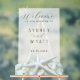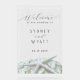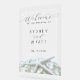 Jardin de bord de mer, panneau d'accueil de mariage de plage blanche. Estarfish blanc / étoile de mer et fleurs blanches (fleurs d'hydrangée) design. Un aspect opaque et dépoli fait ressortir le texte gris foncé et les feuilles les bords clairs. Deux étoiles de mer ornent le dessus. Le script moderne et les polices imprimées sont utilisés et incluent "Welcome" en haut, puis "to the mariage of" avec les noms en majuscules. La date du mariage peut également être ajoutée en bas. Les grands signes, comme celui-ci, se plieront, alors prévoyez de l'adhérer d'une certaine manière au stand pour une bonne mesure. Ou changer la taille au besoin. Des panneaux plus petits se tiennent seuls (dans un support). Ce design floral de plage s'adapte à chaque enseigne. Pour en savoir plus sur le produit, reportez-vous à la description.