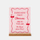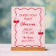 Élevez votre thème de baby shower sur le cerisier avec ce panneau en acrylique personnalisé pour le jeu de devinette Combien de cerises. Parfait pour un thème de baby shower sucré ou pour les thèmes de baby shower de février, il ajoute de l'amusement et du charme. Idéal pour un thème de baby shower « cerise sur le gâteau », une baby shower « elle est la cerise sur le gâteau », ou même une baby shower de la Saint-Valentin, ce panneau de jeu est un centre de table charmant pour toute célébration.