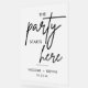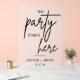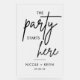 La fête commence ici le signe d'accueil mariage moderne comprend la police de signature de calligraphie et le nom de la mariée et de la chambre ainsi que la date du mariage. Cliquez sur le bouton "outil de conception" pour customiser plus loin.
