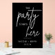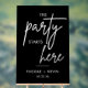 La fête commence ici le signe d'accueil mariage moderne comprend la police de signature de calligraphie et le nom de la mariée et de la chambre ainsi que la date du mariage. Cliquez sur le bouton "outil de conception" pour customiser plus loin.