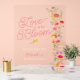 L'amour est en fleurs panneau de bienvenue transparent pour la douche de mariage floral fleurs sauvages avec une illustration aquarelle de fleurs orange, rose et jaune vives et lumineuses peintes à la main avec une police de caractères moderne élégante disant L'amour est en fleurs, avec un feuillage bohème. Parfait pour le printemps, l'été en plein air jardin mariage ou fête de mariage.