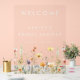 Cette conception allie élégance et fantaisie, associant un texte moderne minimal à une rangée de délicates fleurs sauvages aquarellées, parfaites pour les mariages inspirés du boho.