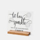 This Let Love Sparkle wedding acrylic sign adds a joyful and romantic touch to your celebration décor. Designed to catch the eye with its charming message, it brings warmth and positivity to any table setting. The elegant style pairs beautifully with a variety of wedding themes, from glamorous to minimalist. Perfect for sweetheart tables, dessert stations, or welcome displays, it enhances the atmosphere with effortless charm. Its compact tabletop format makes it easy to place while still making a meaningful statement. This acrylic sign is a lovely detail that helps create a magical and memorable wedding ambiance.