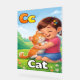Cute and colorful alphabet poster featuring the letter C with a friendly cartoon cat and a cheerful girl illustration.
