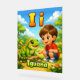 The scene shows a gentle, playful interaction where the child is observing or calmly interacting with the iguana, adding light movement and storytelling to the design without overpowering the letter.