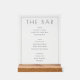 This elegant wedding menu design exudes a modern and minimalist style, perfect for a sophisticated celebration. Featuring clean lines and simple typography, it lists various beverage options in an organized manner, creating a refined and inviting atmosphere. The monochromatic color palette enhances its timeless appeal, making it suitable for any contemporary event. Ideal for couples who appreciate understated elegance, this menu adds a touch of class to your special day while ensuring guests can easily navigate their drink choices.