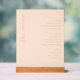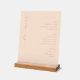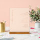 This elegant bar menu design exudes a sophisticated and refined style, perfect for a wedding reception. The soft blush background paired with delicate cursive typography creates an inviting and romantic atmosphere. Featuring categories like beer, wine, and spirits in clean, modern fonts, the layout is both functional and stylish. Ideal for couples aiming to add a touch of class to their special day, this menu seamlessly blends formality with charm, ensuring guests enjoy a memorable experience.