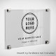 Signe acrylique clair moderne pour votre entreprise avec logo de votre entreprise, nom d'entreprise et une ligne de texte supplémentaire pour votre slogan, slogan, année établie, site Web, etc, en simple typographie.
