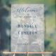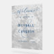 Arrière - plan floral, opaque, mariage acrylique signe de bienvenue. Vient dans de nombreuses tailles. Tout le texte est bleu foncé avec un bleu clair "et" signe derrière les noms de la mariée et du marié. Les noms sont en caractères majuscules imprimés. "Bienvenue" est en script tourbillonnant à travers le haut. Il y a une ligne pour la date en bas. Les grands panneaux, comme celui-ci, se plieront, alors prévoyez de l'adhérer d'une manière ou d'une autre au stand. Les panneaux plus petits ont un socle en bois optionnel et se lèveront seuls. Le chevalet n'est pas inclus. Pour en savoir plus sur le produit, reportez-vous à la description.