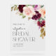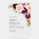 Accueillez vos invités avec ce panneau de bienvenue personnalisable pour shower de mariée floral bohème en acrylique. Il présente un bouquet floral aquarelle de fleurs bourguignon, violettes, rouges et pêches ainsi que des feuilles d'eucalyptus. Personnalisez ce panneau de bienvenue floral d'automne pour votre événement en ajoutant vos coordonnées. Ce panneau de bienvenue bohème pour shower de mariée est parfait pour les showers de mariée d'automne.