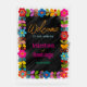 Bienvenue à vos invités avec une élégance audacieuse en utilisant ce signe Mariage acrylique mexicain moderne. Avec son cadre fleuri et animé inspiré de l'art folklorique mexicain traditionnel, les riches teintes de rouge, jaune, rose et turquoise éclatent magnifiquement contre un arrière - plan noir transparent. Le matériau acrylique élégant ajoute une touche moderne et sophistiquée, tandis que les fleurs colorées apportent chaleur, culture et charme festif. Parfait pour faire une première impression mémorable, ce panneau d'accueil mêle tradition et style contemporain pour donner le ton d'une fête joyeuse et vibrante.