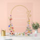 Belle bordure en arc d'or avec des parchemins élégants agrémentés de fleurs sauvages pastel boho chic romantique en bleu pâle, rose et jaune. Cette charmante collection est le complément parfait à votre mariage sur le thème du printemps, de l'été ou du jardin.