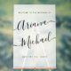 Bienvenue invités à votre événement avec ce minimaliste Script moderne Welcome Frost Acryllique Signe. Présentant un design élégant et contemporain, ce panneau combine une typographie de script élégante à une base acrylique claire, ce qui en fait un ajout chic à n'importe quel lieu. Customisez avec vos noms et votre date de mariage. Tout le texte est entièrement personnalisable. (Une transparence blanche est appliquée derrière le texte pour donner un aspect gelé à ce signe acrylique)