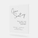 Élégant panneau de mariage ouvert comprend les noms des couples, la date et l'emplacement. C'est un design minimaliste et simpliste noir et blanc qui convient à n'importe quel mariage.