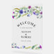 Ce panneau d'accueil mariage acrylique est une célébration vibrante de la nature, avec un arrangement de fleurs sauvages à l'aquarelle. Les fleurs violettes et bleues se trouvent sur le haut et le bas du panneau, entrecoupées de feuilles délicats vert-bleu. L'exposition transparente dégage une élégance charmante et aérée, apportant une touche de beauté naturelle au lieu mariage tout en accueillant chaleureusement les clients.