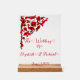 Un design mariage gothique foncé et romantique avec un feuillage rouge sang délicat. Personnalisez avec les noms de la mariée et du marié et la date.