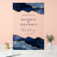 Faites une déclaration et célébrez le couple avec ces élégants panneaux de bienvenue de mariage en acrylique bleu nuit moderne et faux or. Ce design présente une œuvre d'art géodique bleu nuit et faux or. Personnalisez avec vos propres détails.