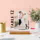 Le magnifique panneau en acrylique clair de numéro de table comprend notre photo préférée, le numéro de table et vos noms en lettres chic. MODIFIEZ LA TAILLE pour adapter votre événement et commander avec ou sans support en bois. CORRESPONDANCE d'objets dans notre collection.