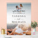 Personnalisez votre décor mariage avec ce panneau d'accueil mariage. Comprend votre photo personnalisée avec un design de typographie simple et élégant.