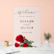 Grand signe de mariage rose "bienvenue" en acrylique. Ce design a un arrière - plan blanc opaque et le design convient à toutes les tailles de panneaux. Le texte est noir - pour le texte de bienvenue et les noms imprimés de la mariée et du marié. Une couleur gris foncé est utilisée pour d'autres termes et la date mariage. Trois roses rouges, sur des tiges verdoyantes, est l'image au fond du panneau. Le script moderne et les polices imprimées sont utilisés. Les grands signes, comme celui-ci, se plieront, alors prévoyez de l'adhérer d'une certaine manière au stand pour une bonne mesure. Pour en savoir plus sur le produit, reportez-vous à la description.