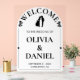 Elevate your entryway with this clean and modern arch wedding welcome sign. Its minimalist layout and trendy curved frame are ideal for contemporary weddings. Personalize with names, date, and location for a sleek finish.
