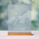 This Dusty Blue Guest Book sign features soft script typography on a frosted, glass-like surface paired with a natural wooden base. The minimal design blends beautifully into modern, classic, and garden wedding settings while adding a refined, high-end touch to your décor.