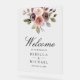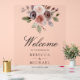 Elegant wedding welcome sign featuring beautiful flowers and modern typography.