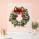 Célébrez votre mariage de vacances avec ce panneau d'accueil acrylique rouge et vert, avec des pins et des baies saisonnières. Une manière festive d'accueillir les clients.