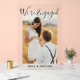 Nous sommes engagés Photo Engagement Personnalisé Signature Acrylique de la partie comprend un signe de photo moderne et unique qui élève votre célébration fiançailles à un autre niveau. Caractéristiques 'We're Engaged' dans le script noir moderne, votre photo et fiancé couples noms ci-dessous. Do-it-yourself facile (faites-le vous-même) en modifiant le texte dans les zones de texte situées à droite de l'écran. Créé par Evco Studio www.zazzle.com/store/evcostudio