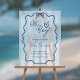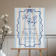 Sympathique et moderne signe de baby shower "Oh Boy" avec des rayures bleu et blanc poussiéreuses, un cadre ondulé dessiné à la main, et un ruban bleu en acrylique blanc dépoli. Un simple signe de bienvenue, mais fantaisiste, parfait pour une maman qui veut une douche élégante sans compromettre l'élément doux et amusant de sa joyeuse célébration.