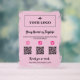 Les médias sociaux acryliques et le signe de paiement pour votre petite entreprise personnalisée avec votre logo, les codes QR, et les médias sociaux. Ajoutez votre nom ou slogan dans un script charmant avec d'autres textes supplémentaires pour répondre à vos besoins, le tout en noir et rose chaud contre la peinture rose pâle imprimée. Magnifique panneau de peinture rose acrylique petite entreprise où vous pouvez ajouter des codes QR pour les médias sociaux et le paiement sous les icônes rose chaud d'Instagram, TikTok, et Venmo, ainsi que votre logo et le texte personnalisé supplémentaire.