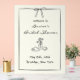 Ce panneau de bienvenue pour une baby shower minimaliste présente un nœud dessiné à la main, une bouteille de vin, un verre et des accents floraux dans une palette noir et blanc. Le design en ligne art dégage une atmosphère moderne et intemporelle - parfait pour une baby shower dans un vignoble, une garden-party ou une réunion dans un loft urbain. Personnalisable avec le nom de la mariée, la date et le lieu, c'est une façon élégante de saluer les invités tout en ajoutant une touche personnelle et stylée. Un favori pour les événements de mariage chic et d'inspiration française.