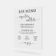 Elevez votre réception de mariage avec notre magnifique Mariage Acrylique Bar Menu Signe ! Conçu à partir d'acrylique de haute qualité, ce magnifique panneau allie harmonieusement élégance moderne et raffinement. Idéalement conçu pour présenter deux boissons signées ainsi qu'une sélection de bières, de vins et de spiritueux. Nos panneaux sont un joli ajout à votre espace bar!