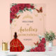 Panneau En Acrylique Papillons rouges Floral Quinceañera Princess Gold