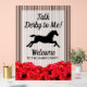 ACRYLIC derby signe d'accueil avec une silhouette hippocampe, rayures noires et blanches et roses rouges, Parlez Derby à moi avec vos détails de fête en lettrage chic. CORRESPONDANCE d'objets dans notre collection.