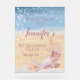 Bienvenue à vos invités dans une fête spéciale avec cette table en acrylique de fête élégante. Design composé d'une plage de sable côtier couleur aquarelle et d'un arrière - plan de mer bleu avec coquillages et lampes à cordes. Le signe idéal pour célébrer votre retraite à thème de plage avec votre famille et vos amis. Tout le texte peut être customisé puis personnaliser avec le nom et la date du parti.
